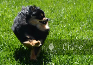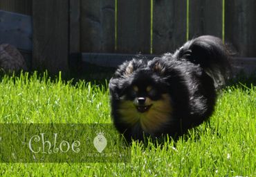 Chloe is hyper and energetic. She's the first to play fight in the morning and the first to finish her treats; just so she can chase her peers for theirs. When she settles down she gives the best cuddles and most passionate kisses with closed eyes while holding your face. Crazy, cuddly and confident. Chloe's affection and love of life radiates through her eyes. She loves to sleep on her back in your arms like a baby.
